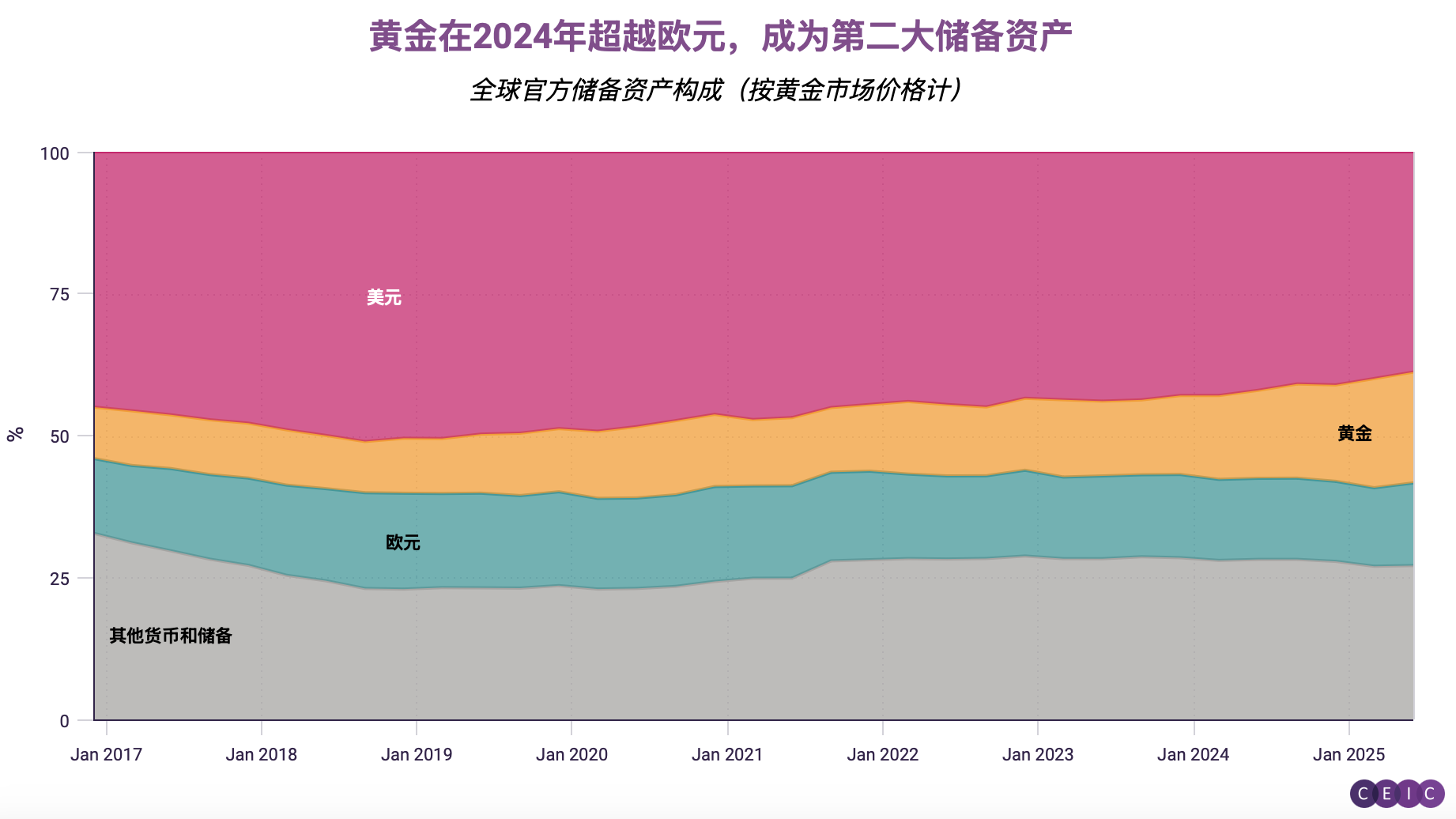 【CEIC数据透视】黄金在国际储备中的崛起